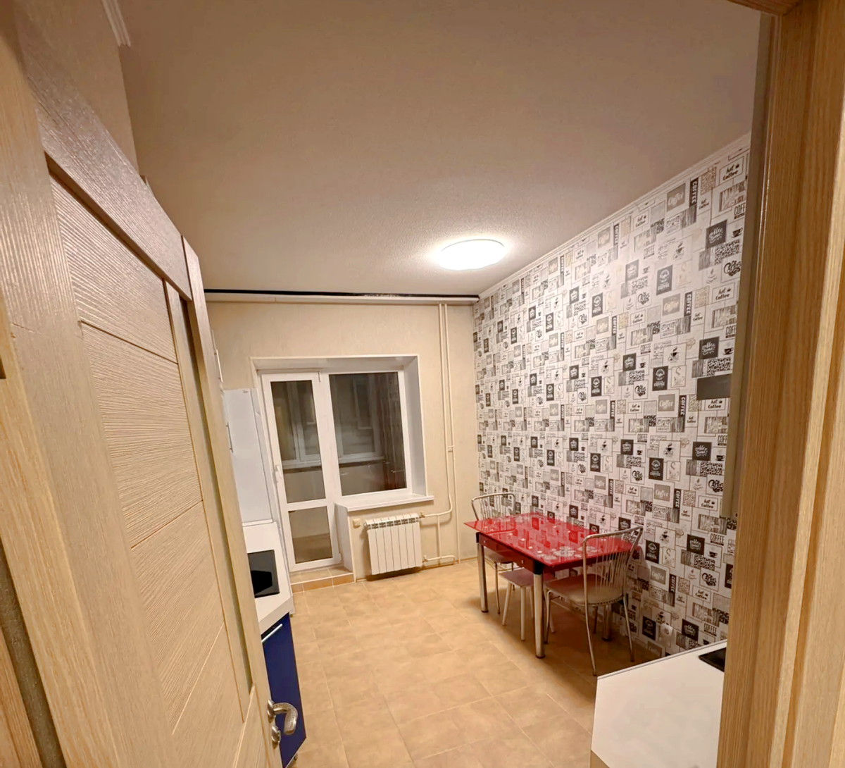 Кухня просторная, удобная для семейных обедов, оборудована всем необходимым.