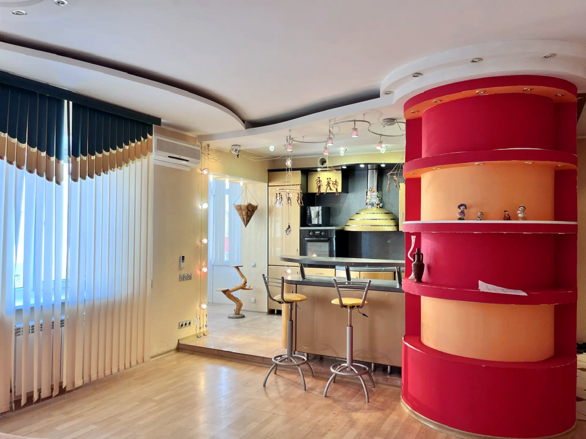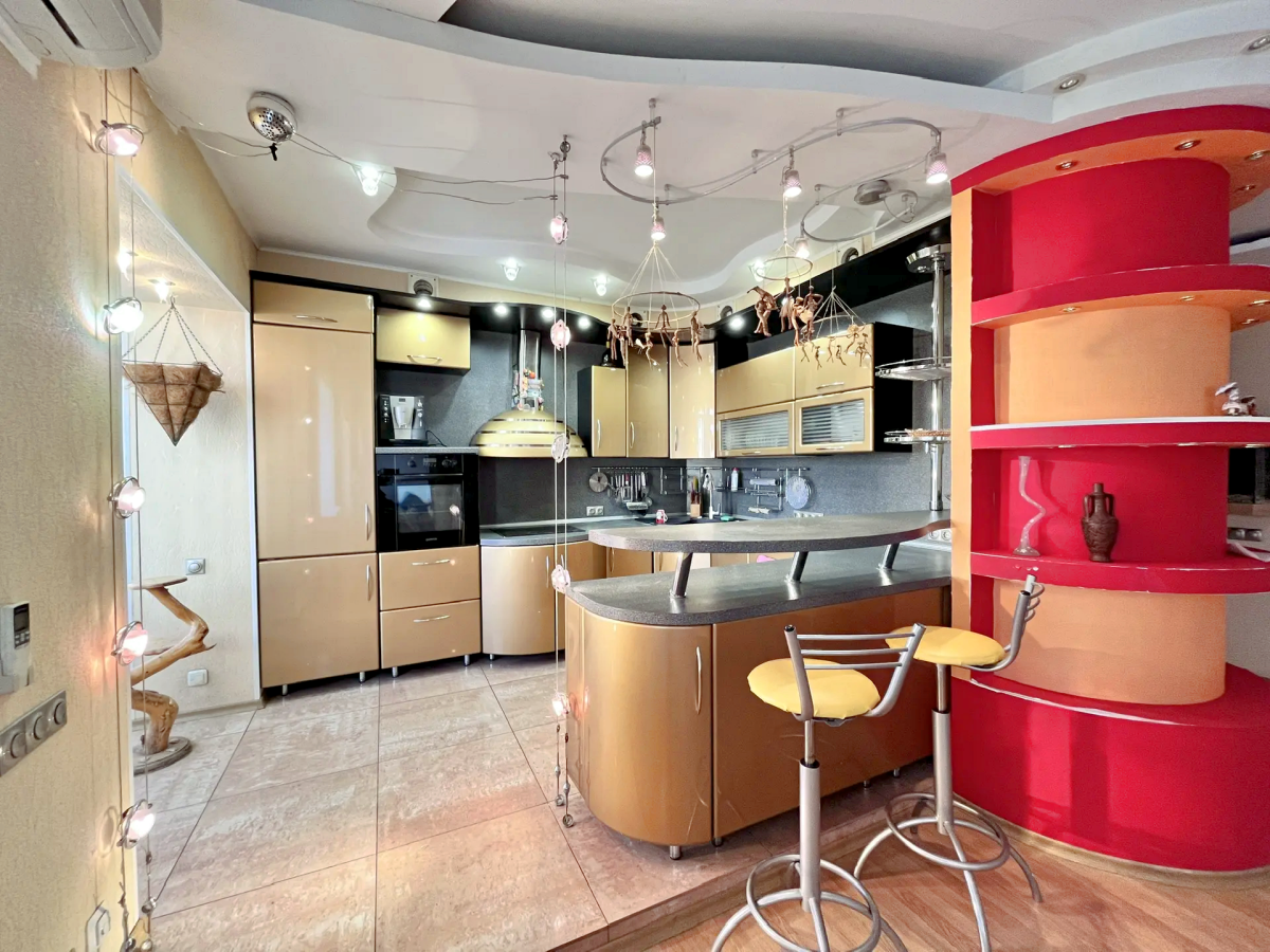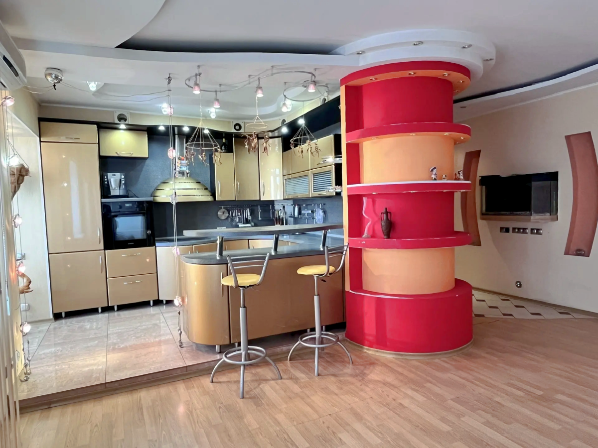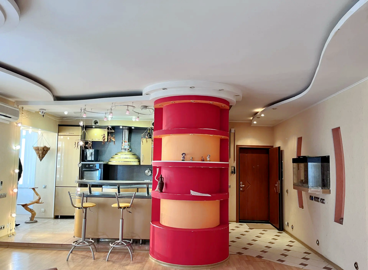 В квартире выполнена перепланировка из 4х комнатной квартиры. В результате перепланировки обустроены просторная кухня-гостиная и две спальни.